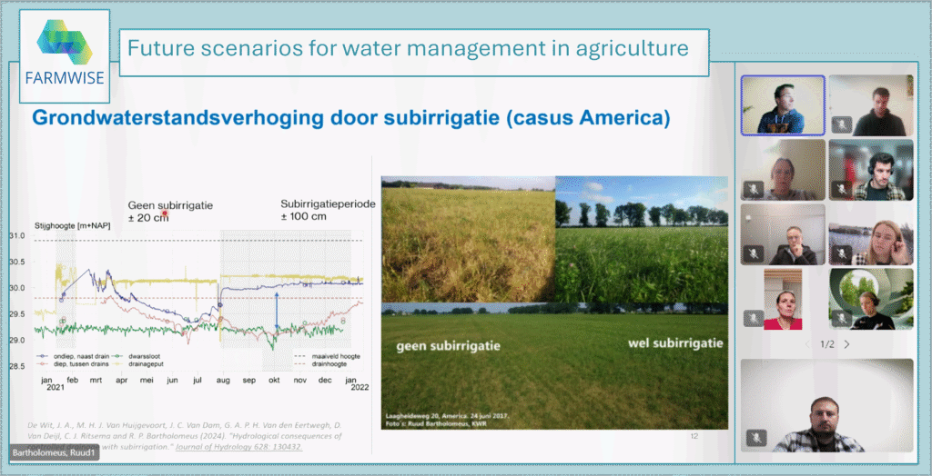 On 28 October, FARMWISE partners hosted a focused online workshop titled “Toekomstscenario’s voor waterbeheer in de landbouw” or “Future scenarios for water management in agriculture” to explore how climate change, irrigation strategies, and emerging technologies will shape the future of water management in Dutch agriculture. Facilitated by Wageningen University, the session brought together 12 participants, […]